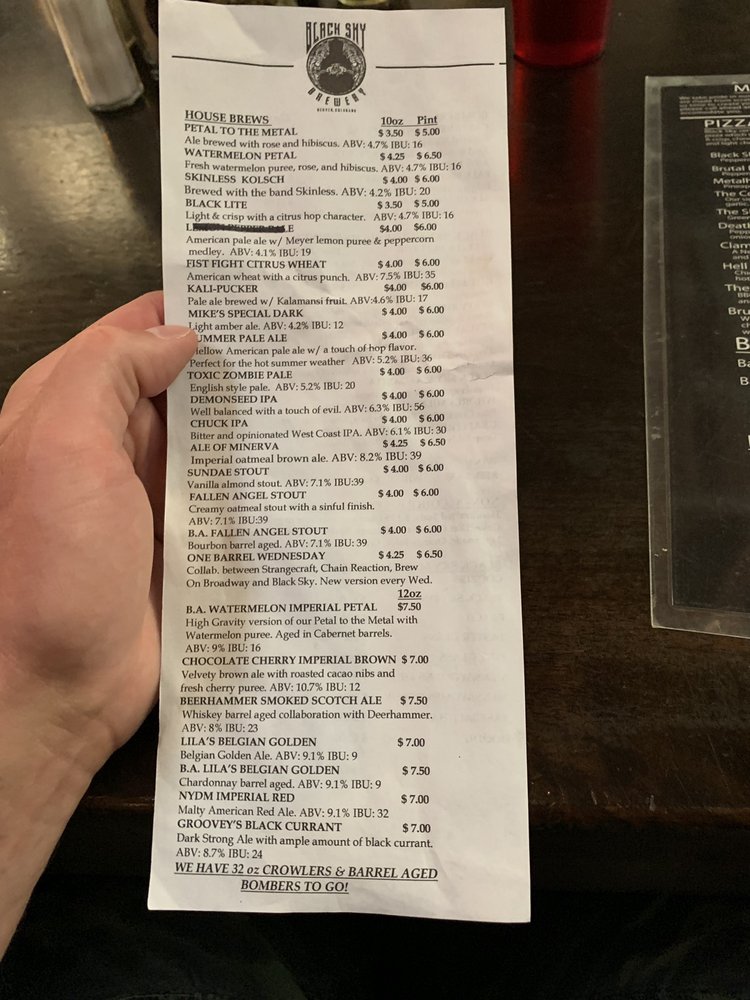 But it doesn’t end there! Black Sky also offers vegan options, in-house hot sauces, and vibrant happy hour specials, ensuring there’s something for everyone. With outdoor seating and a divey but classy vibe, this brewery is a must-visit for great food and unforgettable experiences.